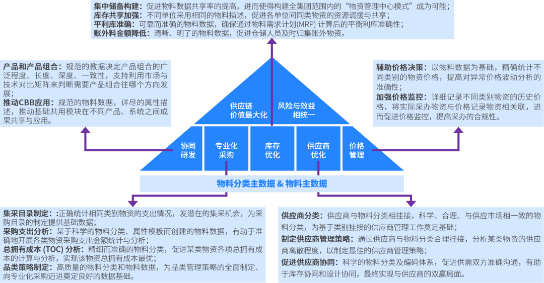 本次項目中,對于物料分類組織各業(yè)務單元五十余名專家,耗時近一個月,并展開多輪的集中辦公討論,確定一千多個物料分類,從大類、中類、小類三級分類實現(xiàn)了對物料的精細化管理。