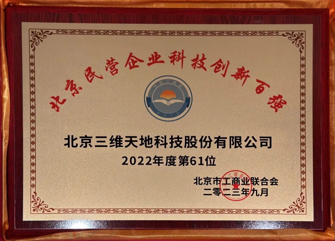 提振民營經濟 推動高質量發展 | 三維天地入選2023北京民營企業科技創新100強