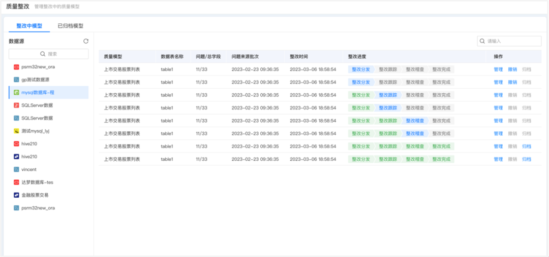 在以往項目實踐中,客戶不愁發現問題,而是更注重如何將發現的問題得以解決、將有問題的數據整改到位。因此平臺支持數據質量的事前、事中、事后的閉環管理,即事前需求和規則定義、事中質量監控以及事后量化分析和問題追溯。