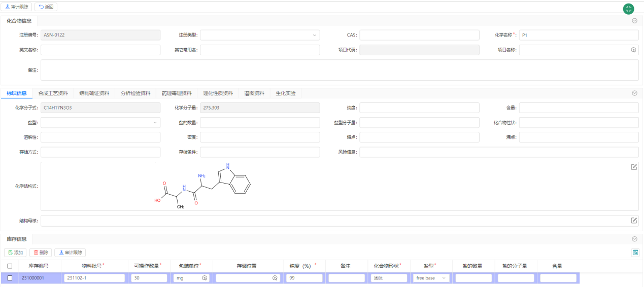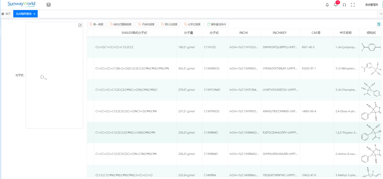 在藥品研發過程中,化合物管理是至關重要的一環。它涉及新藥的研發、生產、質量控制等多個環節,對于提高藥品研發效率和質量具有重要意義。隨著信息化進程的加快,越來越多的企業開始采用信息化系統來管理化合物,以提高新藥研發的效率和準確性。 三維天地根據多年醫藥行業實施經驗打造了一套合規、科學、高效,符合規范的醫藥科研管理系統(SW-RDMS),助力研發機構實現藥物研發過程的科學化、電子化、信息化管理。 SW-RDMS針對藥物研發企業信息化管理提供了全面的業務解決方案,其中化合物管理模塊內容涵蓋化合物注冊及化合物庫存管理、化合物信息庫管理、注冊化合物檢索查詢、化合物數據權限控制等各方面內容,在滿足藥物研發日常工作使用的同時,更強調研發成果的管理及維護,助力企業建立標準的化合物管理方式。 2.1 化合物注冊及化合物庫存管理 SW-RDMS提供完備的化合物注冊流程,除支持常規方法登記注冊新產生的化合物外,還可與ELN進行聯動,將實驗產生的化合物一鍵注冊,注冊內容包括記錄化合物編號、注冊類型、化合物名稱、結構式、基本理化信息、結構確證信息、分析檢驗信息、藥理毒理信息等。 此外還支持管理注冊的化合物庫存存量信息、批次信息,在后續實驗過程中可直接引入使用。 2.2 注冊化合物檢索查詢 SW-RDMS支持對注冊的化合物進行多種方式的檢索查詢,如通過基本信息檢索查詢、通過已知的結構式精確搜索或相似性搜索、通過部分母核結構進行子結構搜索等。 2.3 化合物信息庫管理 為便于研發人員更方便地查詢化合物信息,SW-RDMS提供了不少于2000萬條公開化合物數據的信息庫(支持每周30萬數據量的擴增),記錄信息內容包括化合物基礎標識信息、理化信息、晶體結構等。 在實際使用中研發人員在實驗過程中可通過分子式、CAS號等信息、結構式進行化合物檢索后,將檢索出的化合物直接導入到實驗記錄中,大大減少重新繪制結構式的工作,為研發實驗提供便利。 2.4 化合物數據安全控制 在化合物數據安全性方面,SW-RDMS支持通過數據加密的方式來保證機密數據不易泄露,通過權限的配置來控制化合物庫的訪問,達到保護化合物庫免受非法訪問和濫用的目的。