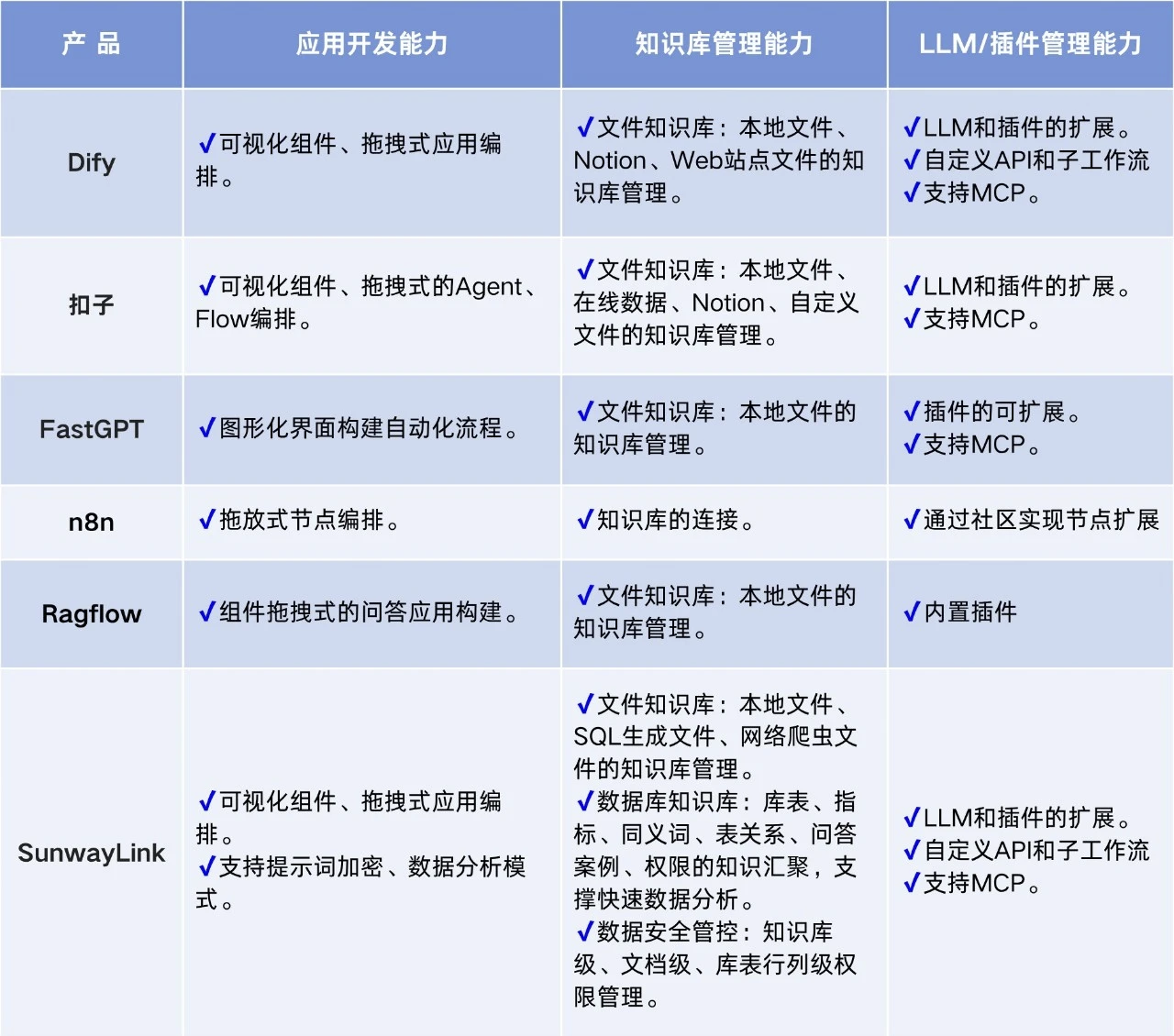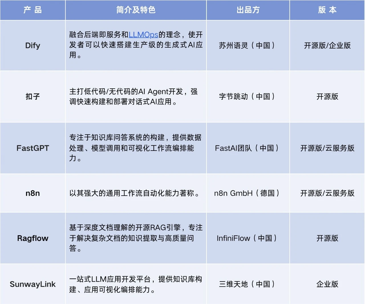 AI應用開發平臺,Dify、扣子、FastGPT、n8n、Ragflow、SunwayLink怎么選?